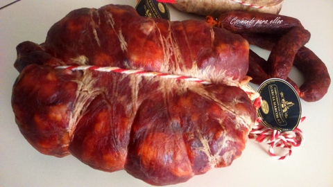 Este embutido es muy rico y se elabora rellenando el estomago del cerdo (bandullo, como se le llama en mi tierra) con la costilla picada menuda y adobada con buen pimentón, ajo, orégano, sal y una poquita agua. Una vez relleno se seca durante 15 días no mucho mas.